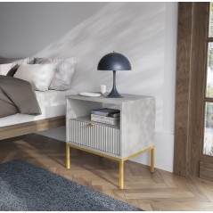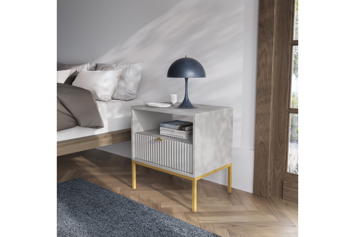 Stolik nocny NOVA S54 Glamour z szufladami w kolorze szarym ze złotą ramą