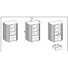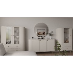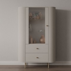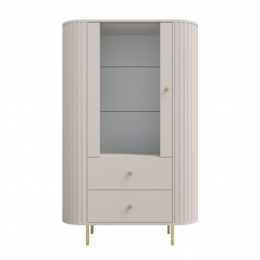 Witryna OVALIO 112 98 cm Beż Piaskowy Zaokrąglone boki, szuflady, ryflowania